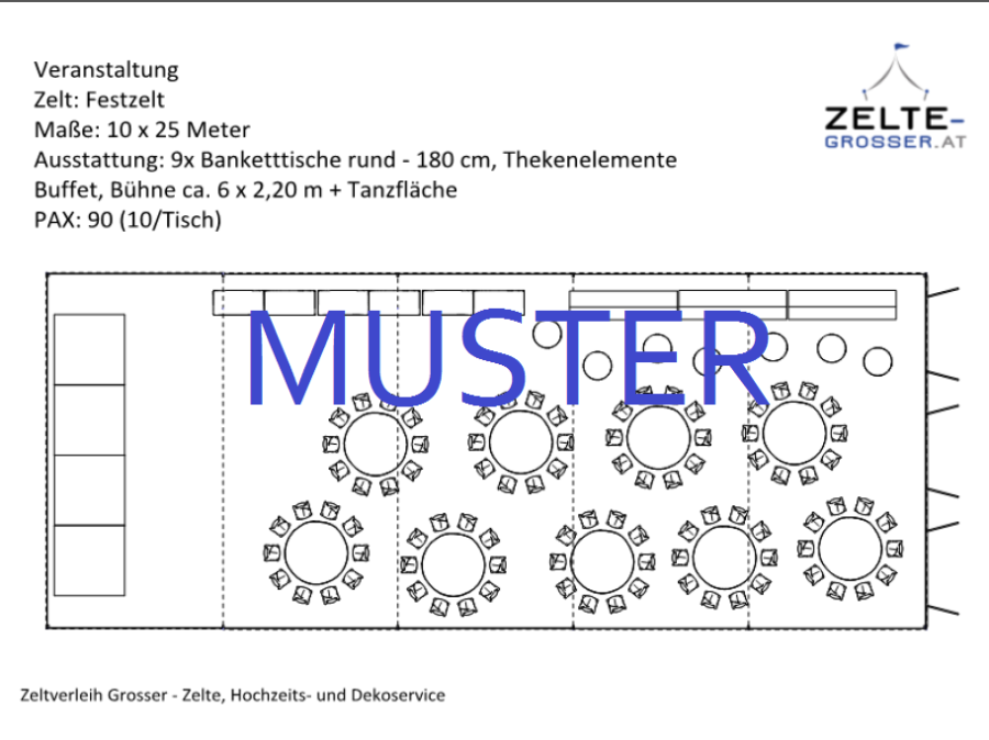 Wir berücksichtigen Tische, Bühne, Tanzfläche, Theke, Buffet - ja, alles was dazu gehört.